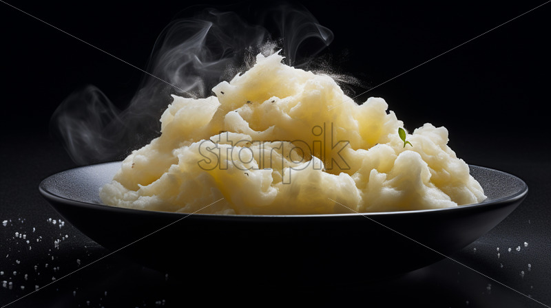 Mashed potatoes steaming in a plate