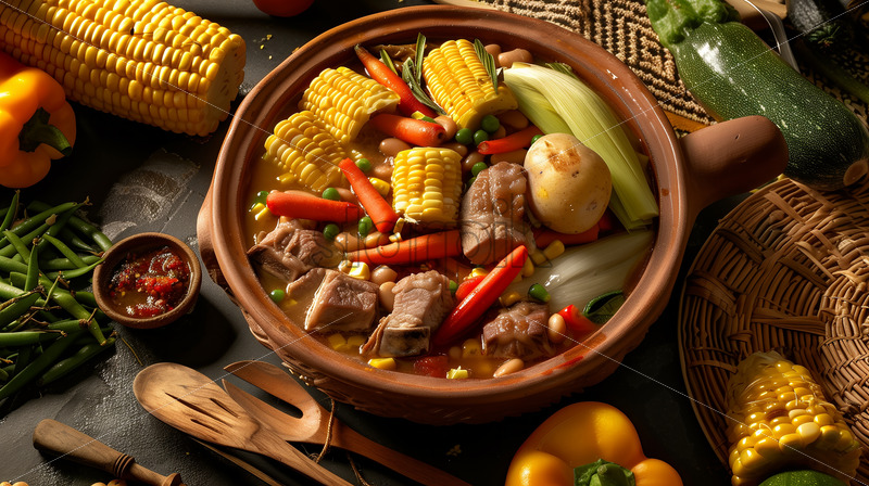 Cape Verdean Cachupa, a hearty stew made with corn, beans, vegetables, and various meats.