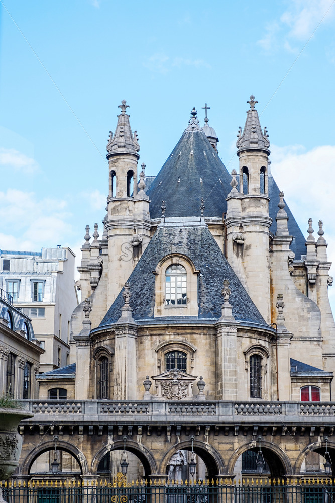 Home » Shop » photo » Medieval castle in the center of Paris. View throw a window. Shiny day with some clouds in the sky. Bright sunlight