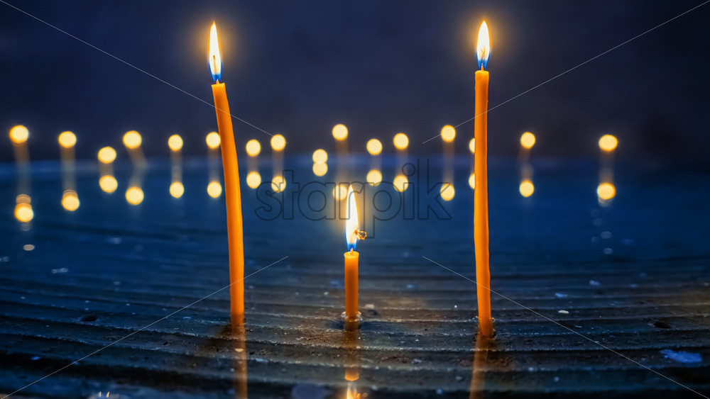 Close view of candles in Memorial to the victims of communism and resistance in Sighetu Marmatiei, Romania