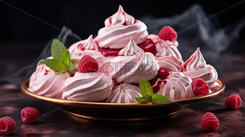 Meringue cookies with raspberry delicious