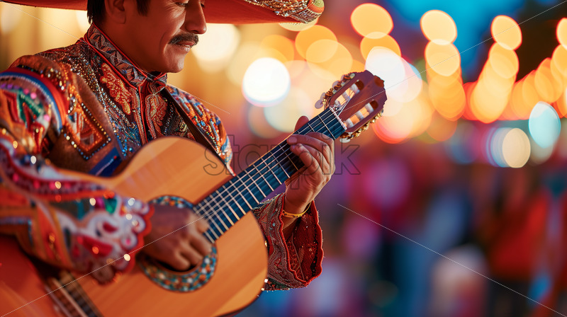 mexican man playing guitar enjoying musics