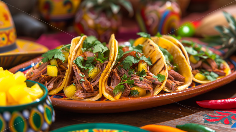 A mouthwatering image featuring Mexican Tacos al Pastor, marinated and spit-grilled pork served in soft corn tortillas.