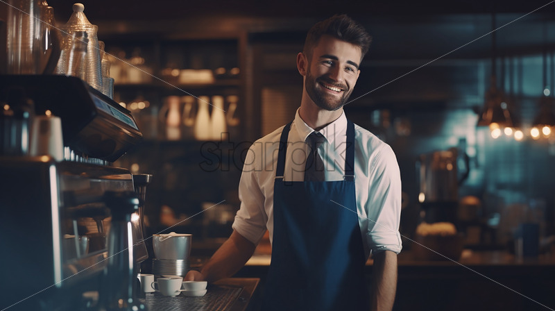Middle age man barista making a coffee in the coffee shop