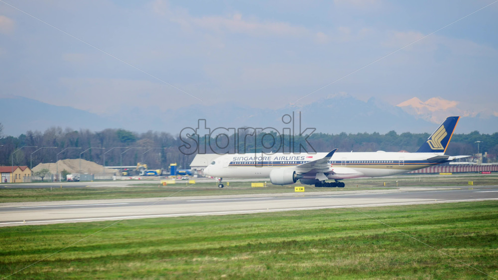 Milan, Italy – March 20, 2025: Singapore Airlines plane moving through the airport Royalty Free Stock Video Footage