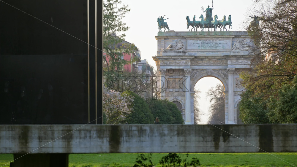 Milan, Italy – March 20, 2025: View of the Peace Arch in the Sempione Park in daylight Royalty Free Stock Video Footage
