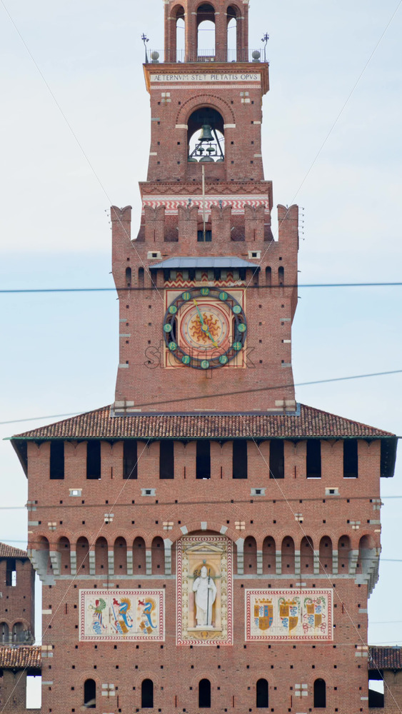 Close up of the Filarete Tower in Milan, Italy. Vertical Royalty Free Stock Video Footage