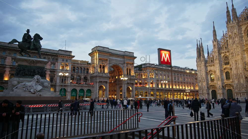Milan, Italy – March 22, 2025: Multiple people walking through the Duomo Square in the evening Royalty Free Stock Video Footage