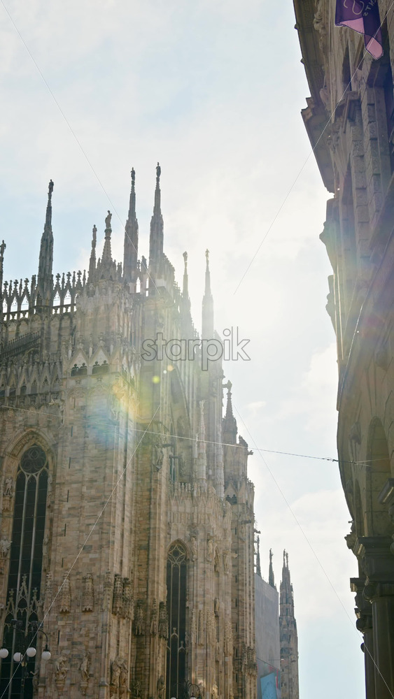 Milan, Italy – March 22, 2025: Side view of the Duomo Cathedral with sunlight Royalty Free Stock Video Footage