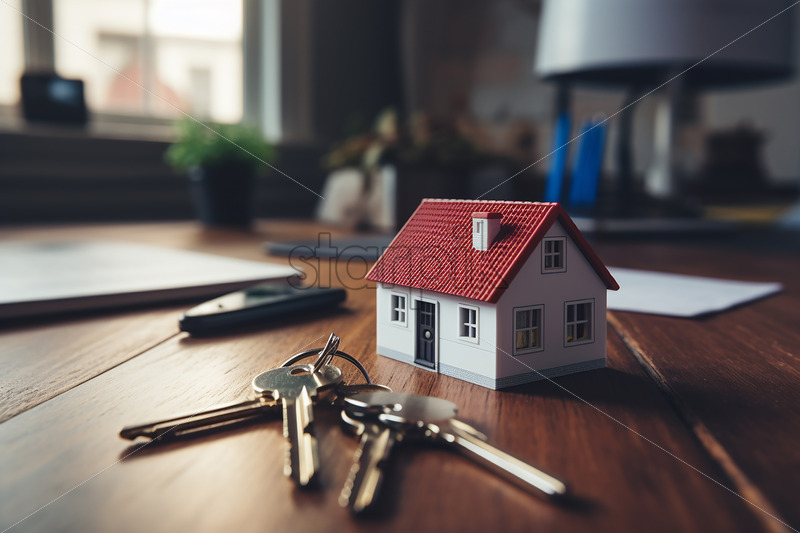 Home » Shop » AI Illustration » Miniature of a house, and a key next to it