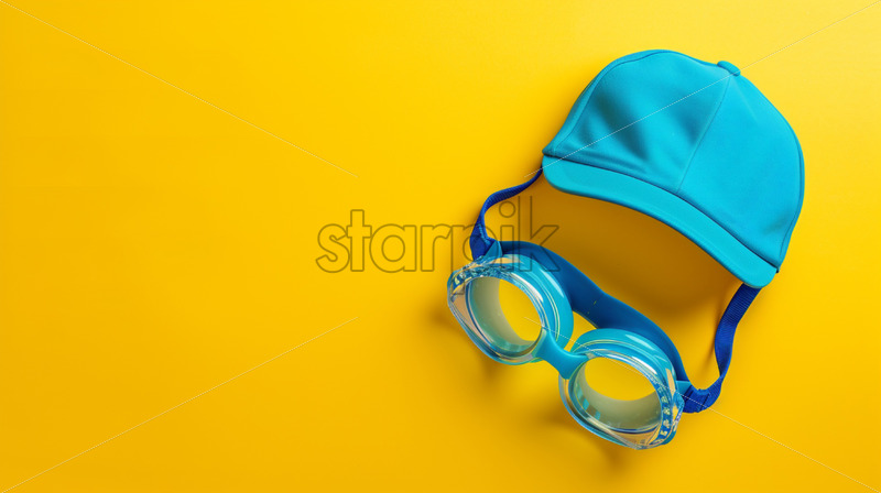 Minimalist composition with swimming goggles and cap