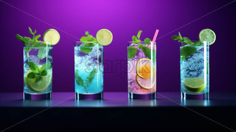 Mint and fruit cocktails, vibrant colors