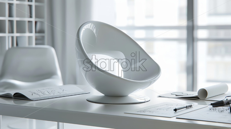 Model of a chair on a designer’s table