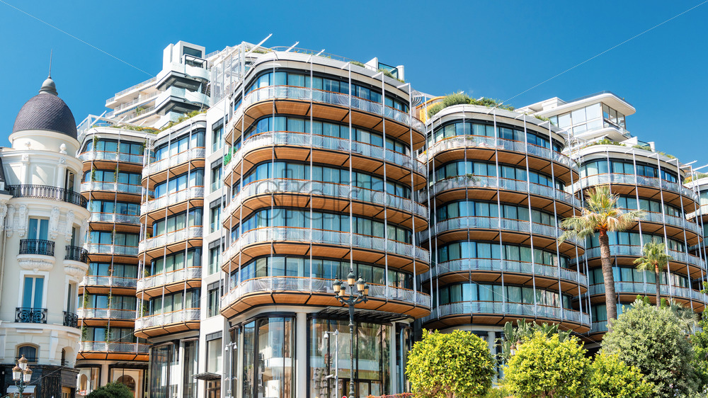 Modern residential building facade at sunny day in Monaco
