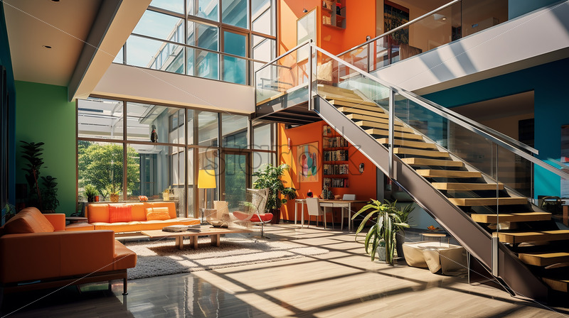 Home » Shop » Uncategorised » Modern house in the city , clear glass wall with classic couch and minimalist computer table , a cozy ambience