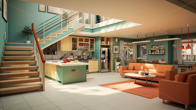 Home » Shop » Uncategorised » Modern house in the city colorful house a summer vibe with minimalist couch and kitchen and a classy stair