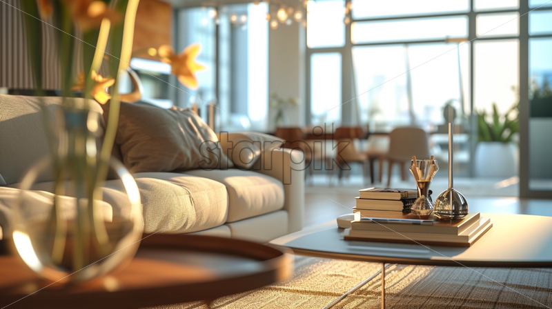 Modern house architecture in the city with clear glass wall and white and brown ambience clear glass wooden stair and indoor plants 2nd floor clear glass and wooden kitchen