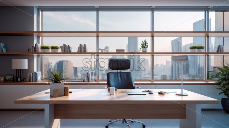 A modern office equipped with furniture and equipment
