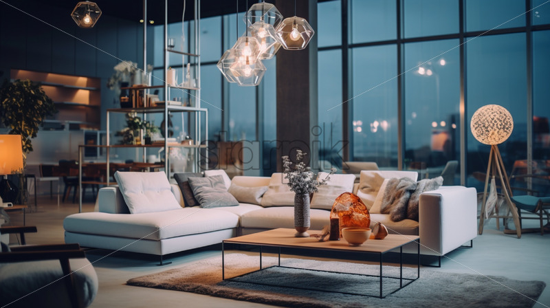 Modern luxury living room at sunset