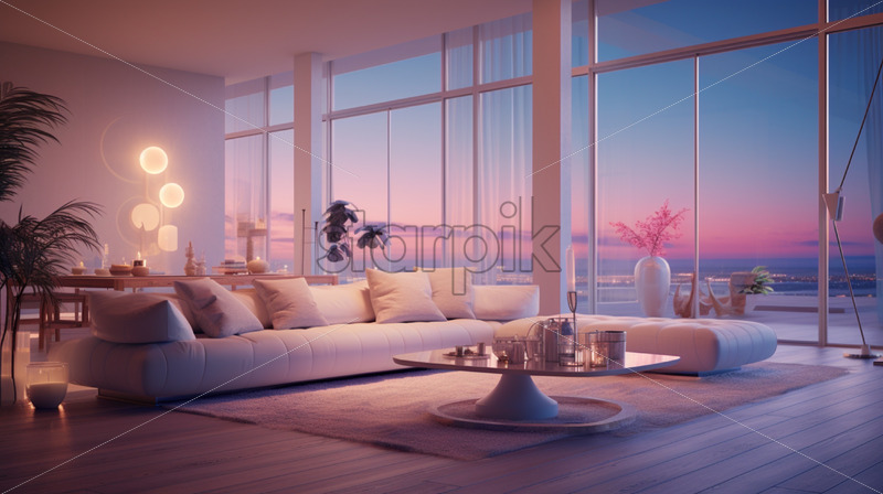 Modern house in the country side, minimalist wall and lounge, classy lounge with wooden shelves and indoor plants, relaxing living room