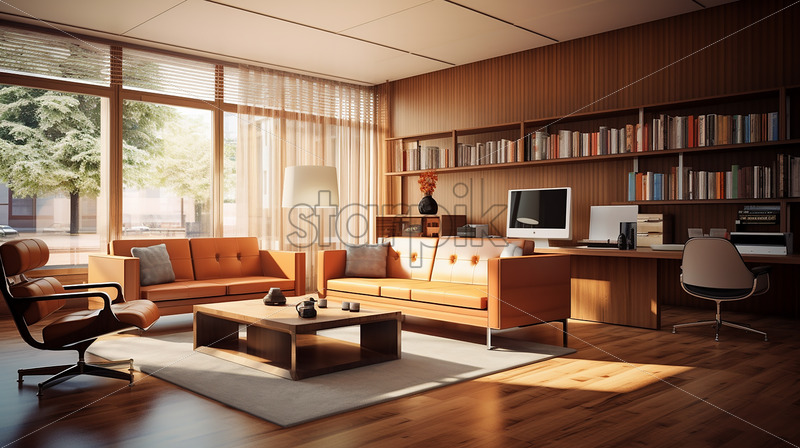Modern wooden house in the city and a cozy wooden lounge in a wood theme and a cozy couch with clear glass wall