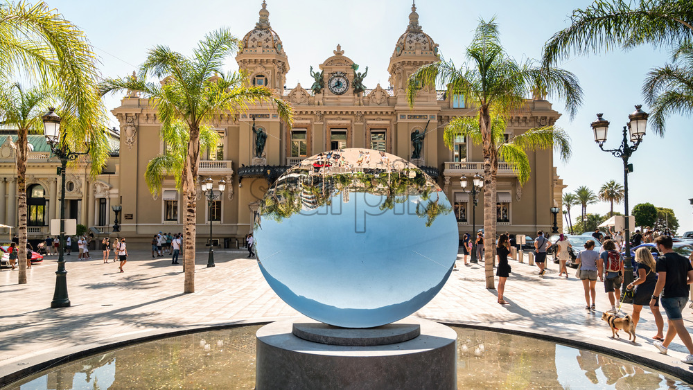 MONACO – AUGUST 8, 2021: Monte-Carlo Casino square, greenery, monument, sunny day