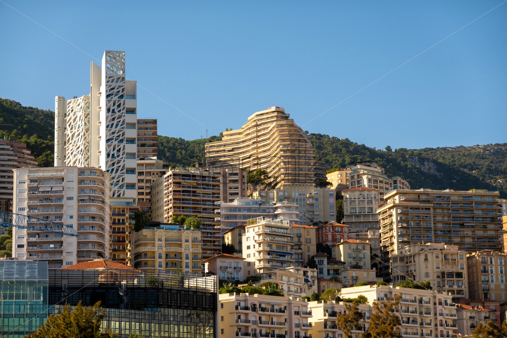 Monaco city buildings over blue sky