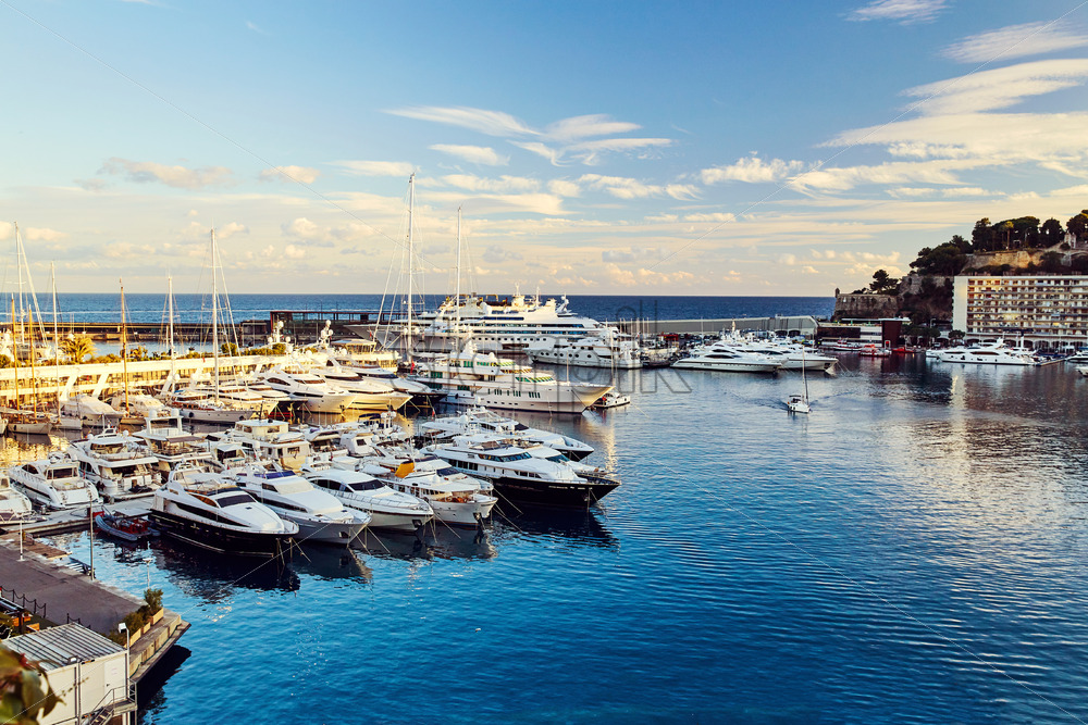 Home » Shop » photo » Monaco port at sunset. Parked yachts on foreground