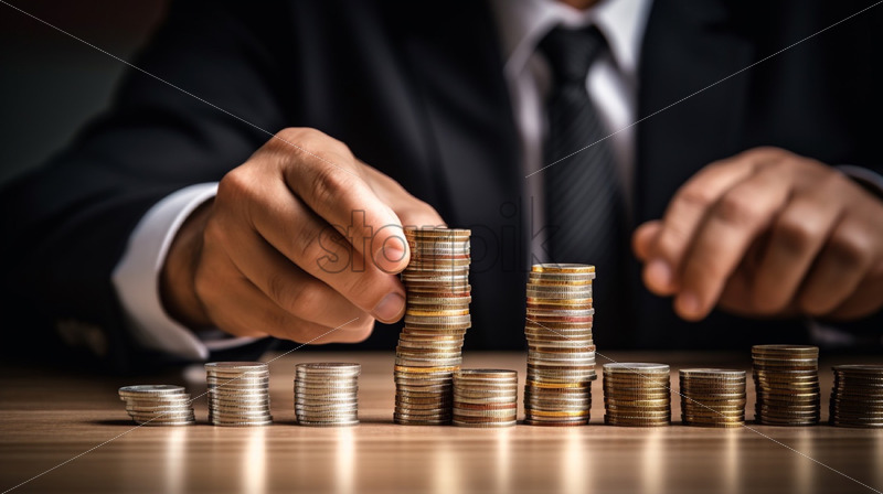 Woman dropping a banknotes into a jar with rolled banknotes on the table. Papers on the table