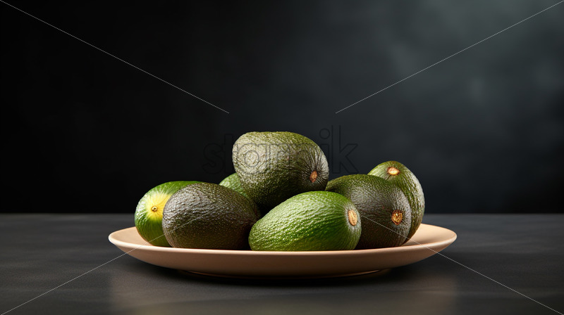 Crispy bruschetta with tomatoes, avocados and basil. Wooden plate ornated with fruits. View from top Royalty Free Stock photo