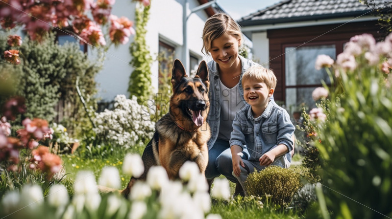 Dad and kids winter time, spending time together outdoors, walking in a forest