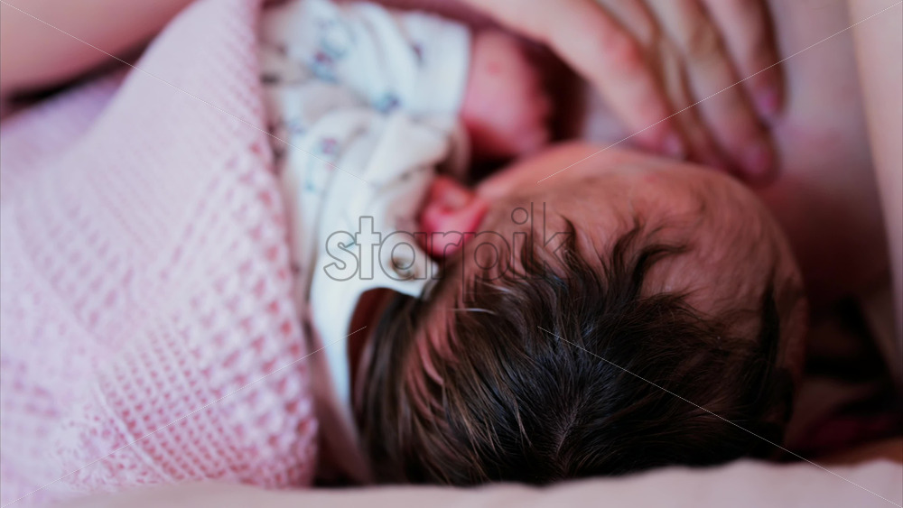 Home » Shop » 1 Video » Video – Mother gently cradling newborn’s head while breastfeeding in a quiet, intimate moment