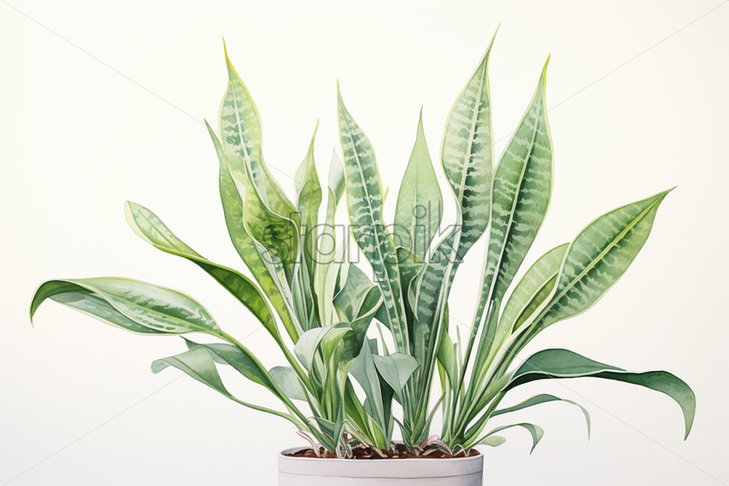 Mother-in-law’s tongue plant on a white background painted in watercolor