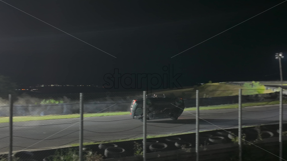 Mures, Romania – July 19, 2025: A drift car balancing on two wheels while sparks and fireworks light up the scene opening up the RoDrift competition Royalty Free Stock Video Footage