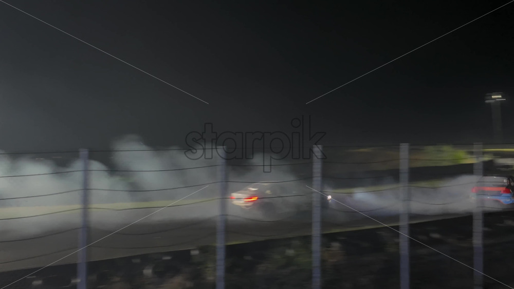 Home » Shop » 1 Video » Video – Mures, Romania – July 19, 2025: Two cars drifting at high speed on the Transilvania Motor Ring, race track at night, with headlights and tire smoke at the RoDrift competition