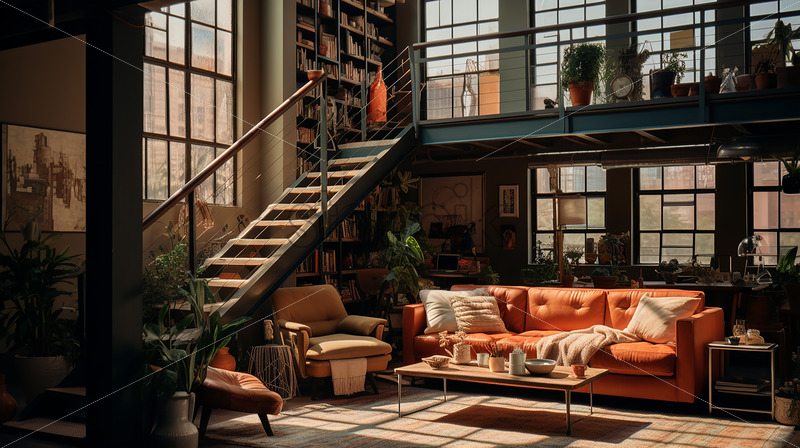nature friendly house in the country side, clear glass wall with minimalist couch and book shelves in a relaxing home beacause of the indoor plants