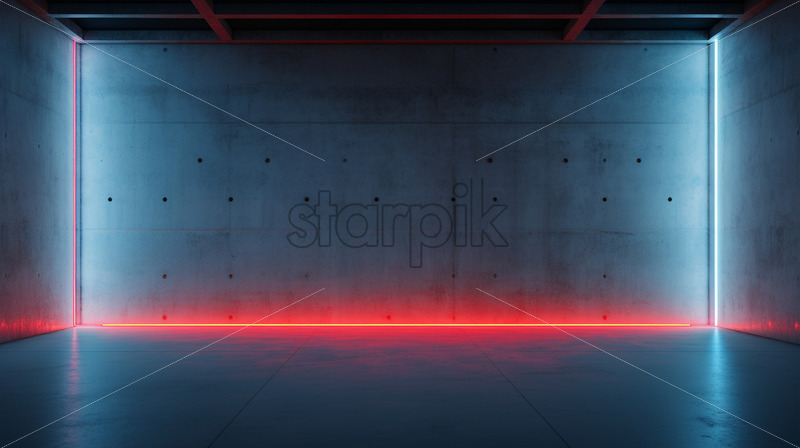 Neon lights in a concrete room