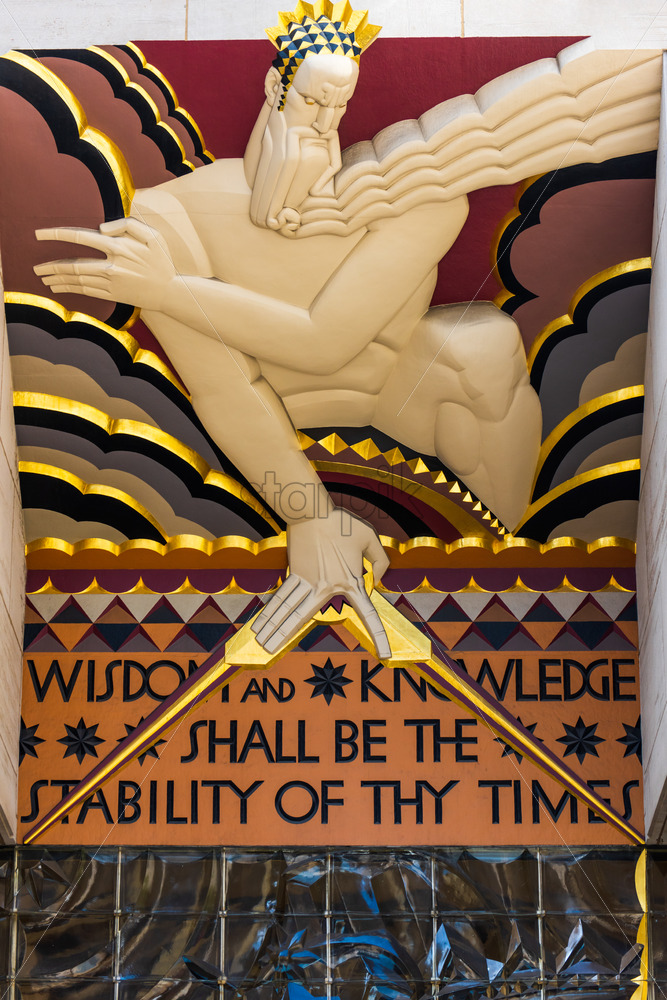 Home » Shop » photo » NEW YORK, USA- 20 SEPTEMBER, 2019: facade of the General Electric Building, 30 Rockefeller Plaza. Quote-Wisdom and knowledge shall be the stability of thy times