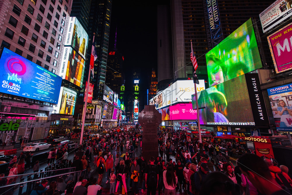 NEW YORK, USA- 20 SEPTEMBER, 2019: time square at night, led screens with advertising on the street