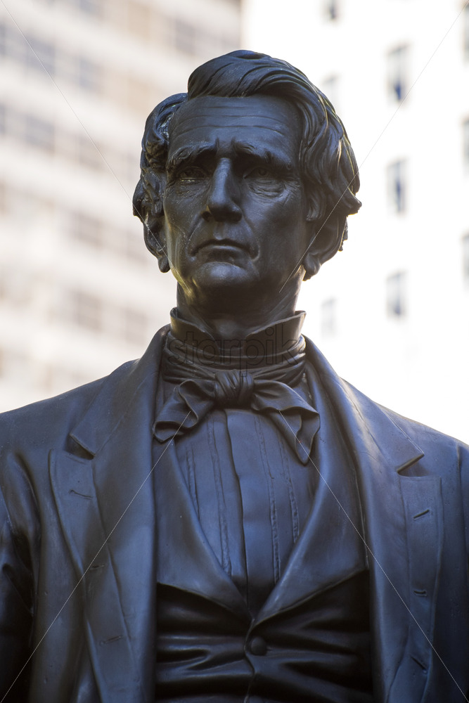 NEW YORK, USA – SEPTEMBER, 2019: View of the New York Stock Exchange building in city downtown. Facade made in old classic style, people in front of it