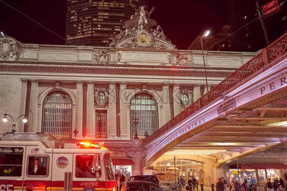 NEW YORK, USA, SEPTEMBER 19: Night shot of the Grand Central Terminal with many busy people and cars on the ground