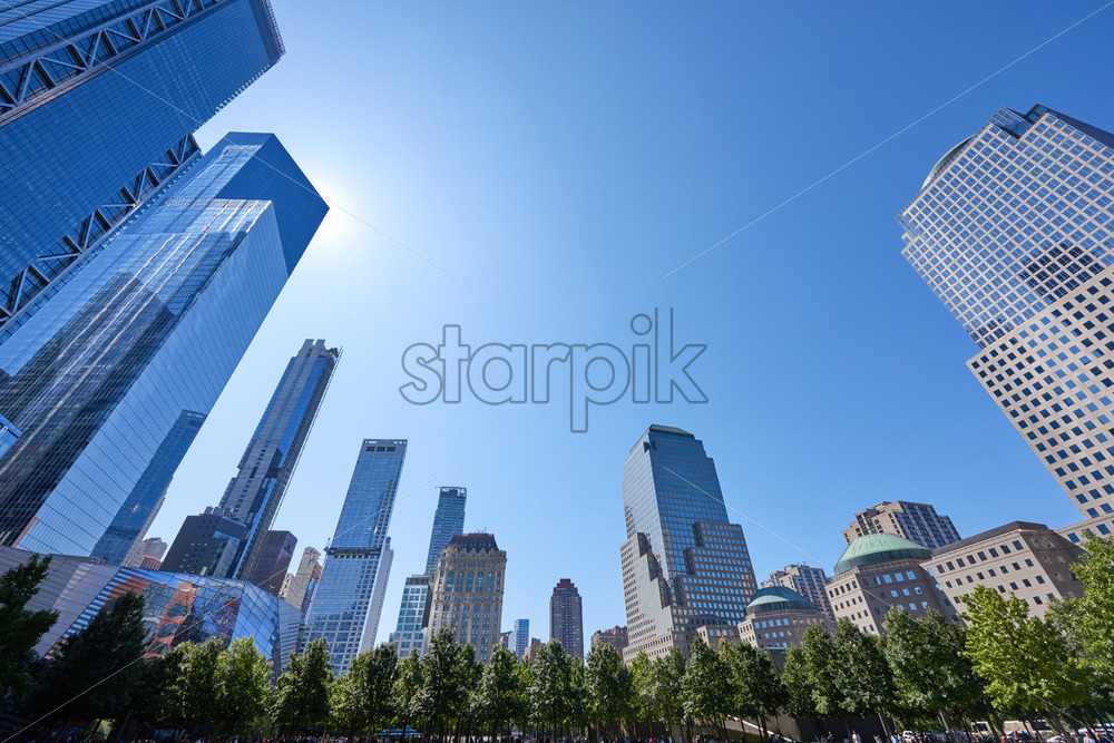 NEW YORK, USA, SEPTEMBER 19: Shot of the World Trade Center Memorial in with lots of walking people