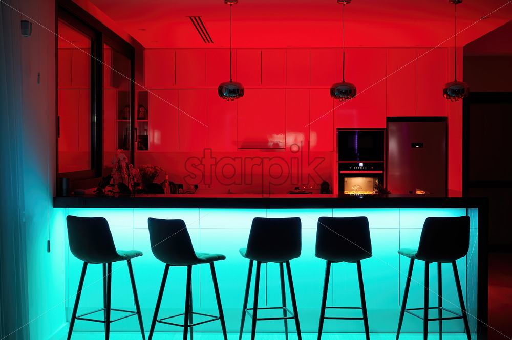 Home » Shop » photo » NICOSIA, CYPRUS – FEBRUARY 18, 2020: Kitchen in a house with illumination made in modern style