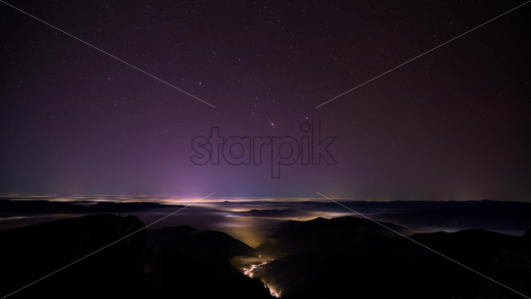 Night stars timelapse in the mountains with moving clouds. Ceahlau National Park, Romania Royalty Free Stock Video Footage