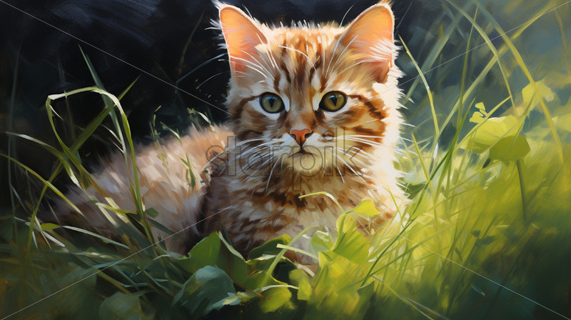 Oil painting of a cat in the grass