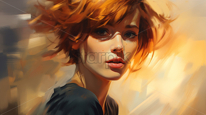 Oil painting of a girl with short hair