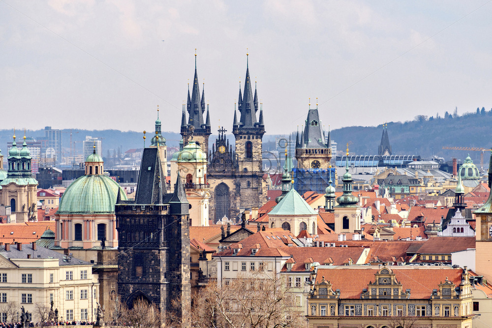 Home » Shop » city » Old city buildings and famous castle from above in a cloudy day. Miniature style photography. Negative copy space, place for text. Prague, Czech Republic