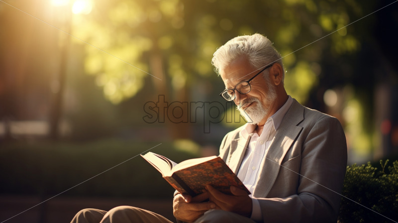 old man reading a book in the parks