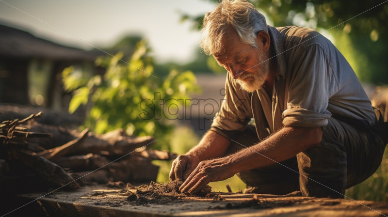 Home » Shop » Uncategorised » Old man working with wood at his farm