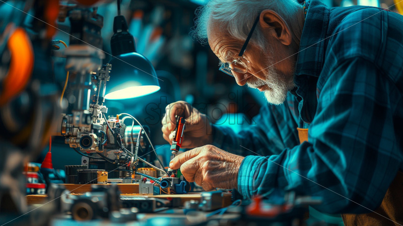 Two young happy engineers fixing a mechanical robot car in the workshop, using VR virtual reality headsets, computer programming Royalty Free Stock Video Footage